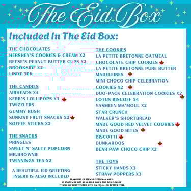 Send warm Eid greetings with this specially curated, deluxe Eid Gift Box. Made with the entire family in mind, this one-of-a-kind Eid Box is sure to please; Chocolates, Candies, Cookies, Snacks, Loot Bag Toys and More!